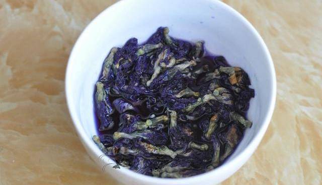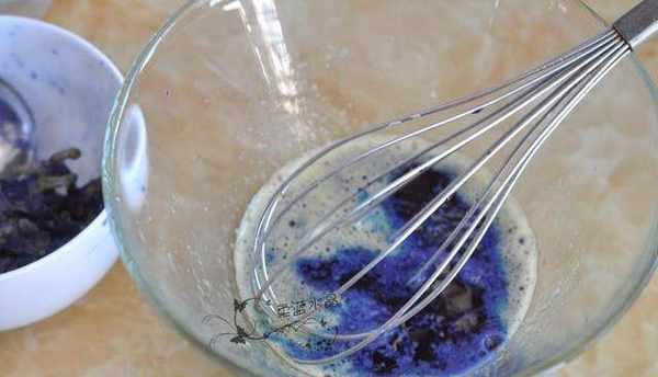 1.蝶豆花裡加入水浸泡10分鐘。