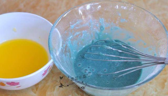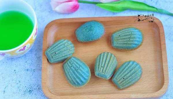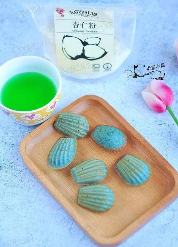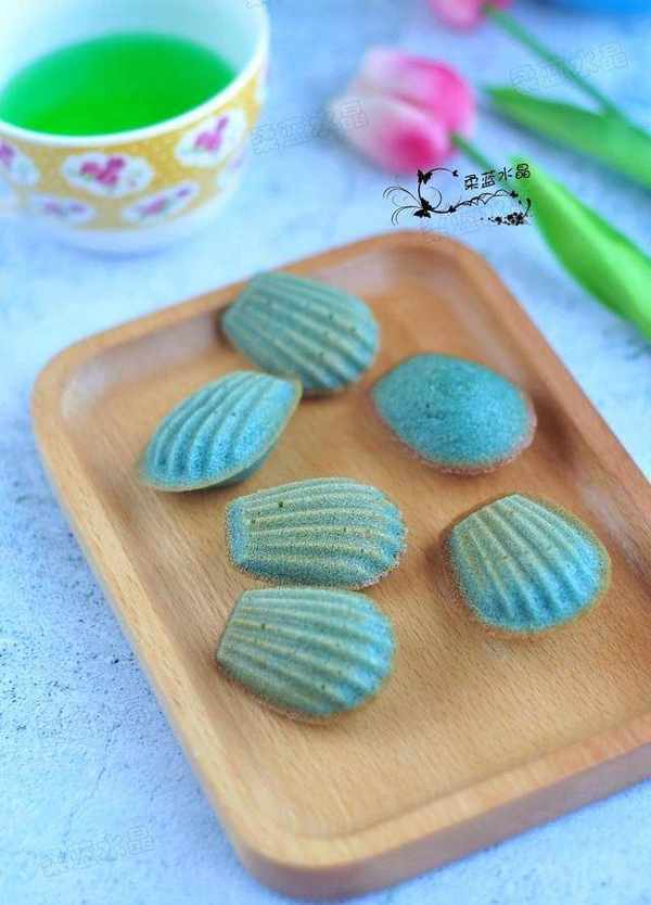 用瞭蝶豆花,烤出來的瑪德琳是漂亮的蒂芙尼藍。蝶豆花也稱藍蝴蝶,具有豐富的維他命A、C、E,可以提高免疫力,幫助和促進皮膚的彈力和骨膠原,東南亞國傢的人多用它泡茶喝。蝶豆花中的有天然花青素,晾幹水泡出來是藍色的,加入檸檬汁會變成紫色的,可以當做天然色素來用,或者調雞尾酒用。