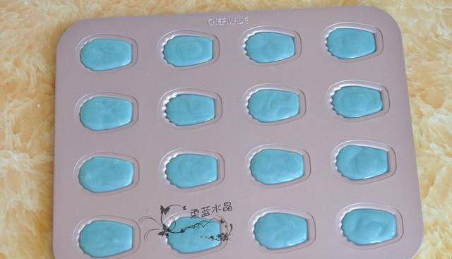 就是最後幾分鐘沒註意,上色有一點深瞭,但是剛烤出來的又脆又香,讓人一直想吃,都留不到過夜。用瞭學廚的16連瑪德琳模具來烤,烤出來的小貝殼精致小巧,迷你可愛。它是食物中的天然色素,能把蛋糕也變成瞭藍色的,好看又好吃!