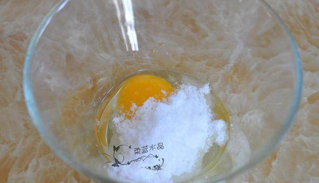 2.雞蛋裡加入糖打散。