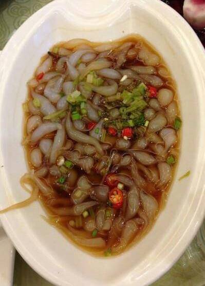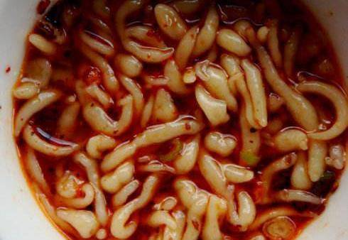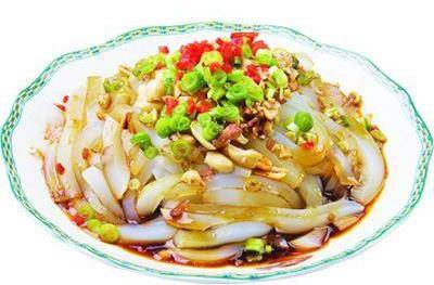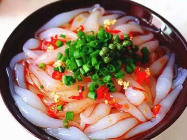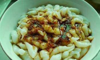面面魚(又稱娃娃魚),因形狀似蝌蚪、小魚而得名,是北方的一道小吃,用紅芋淀粉制作而成,滑爽勁道,口感極好。