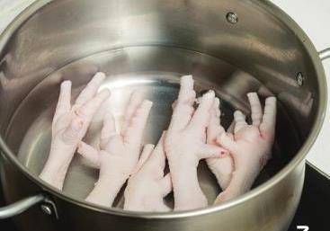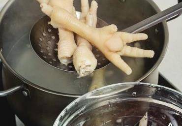 4煮2分鐘左右後將雞腳撈起,洗凈。