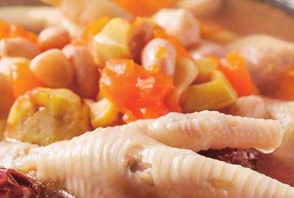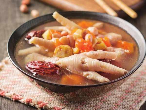 女性天生就比男性更需要滋補,這道濃鬱鮮美的營養湯特別適合女性食用。紅棗可補氣、養血、安神,花生可潤肺、延緩衰老;板栗中維生素和蛋白質的含量豐富,對脾胃也十分有益;雞爪富含鈣和膠原蛋白,具有美容養顏的功效。滿滿一鍋全是營養,飯桌有它萬事足。如果正值產後,飲這道湯還可以催乳汁、養氣血、補充體力,幫助恢復身材。