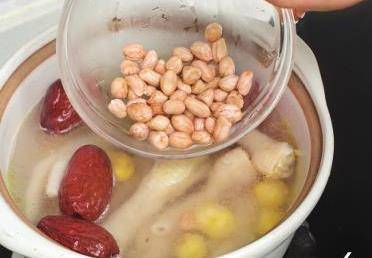 6調小火煮1小時左右,加入紅棗、花生、栗子,繼續煮40分鐘。