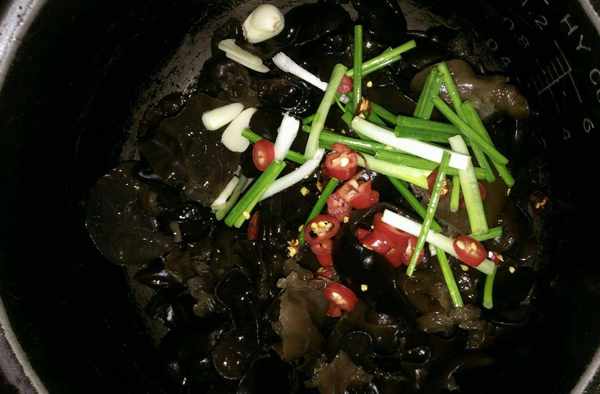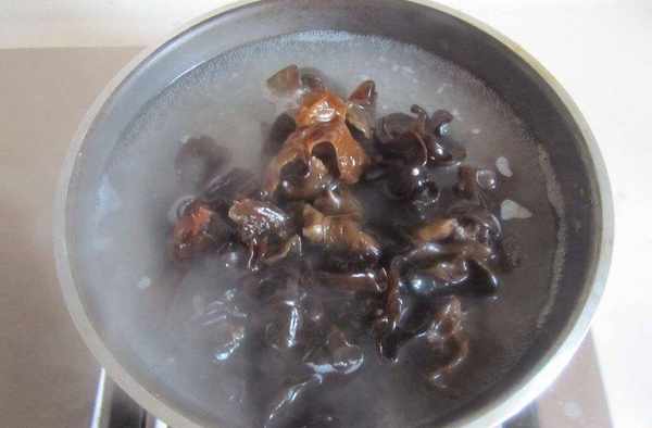 (3)鍋中倒入清水,水開時,加一勺鹽,將木耳倒入鍋中,再次煮開後撈出。