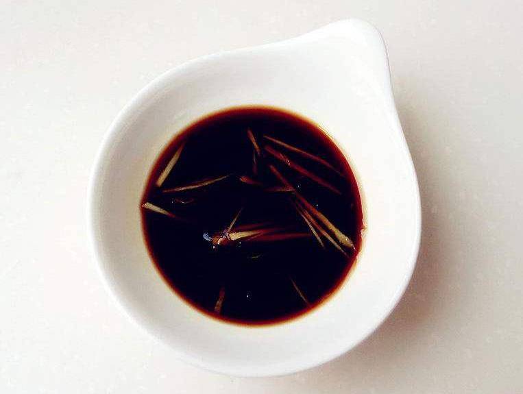 (2)準備好碗,加兩勺陳醋、一勺料酒、兩勺生抽、一勺白糖、一勺鹽,攪拌均勻備用。