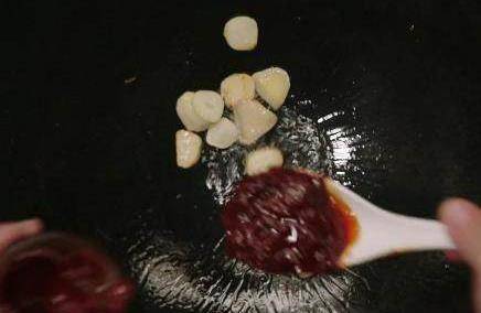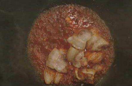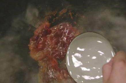 鍋內倒油,油熱後,下肉片過油,撈出,瀝油。