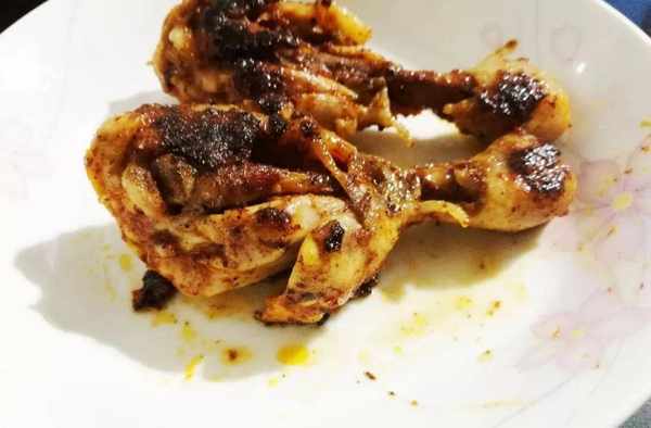 自已烤雞腿,可以根據自已的口味,想放什麼調料就放什麼,也可以配上洋蔥或者彩椒配菜一起煎烤。