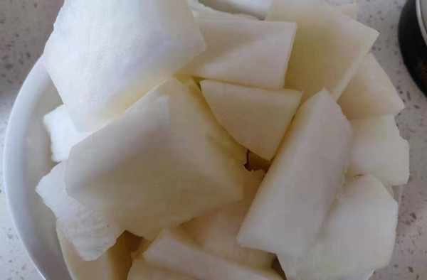 準備半個蘿卜切大塊,備用。