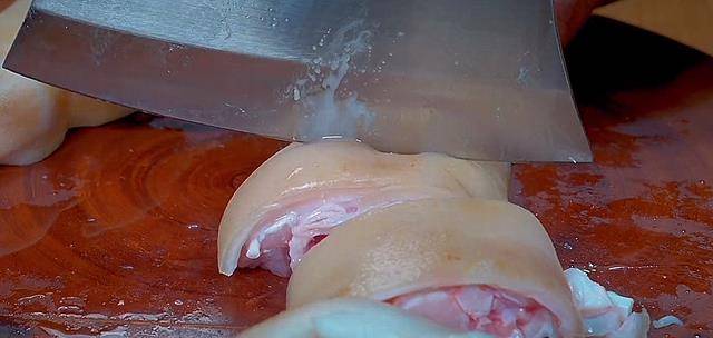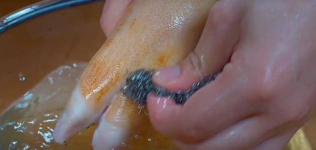 3.最後用鋼絲球把它刮洗幹凈,這樣這個豬蹄就處理好瞭。