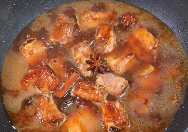 制作方法5、出現棗紅色就可以,生抽再配一點也可以