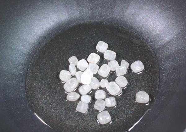 制作方法4、鍋內底油,一把冰糖熔化,全程小火