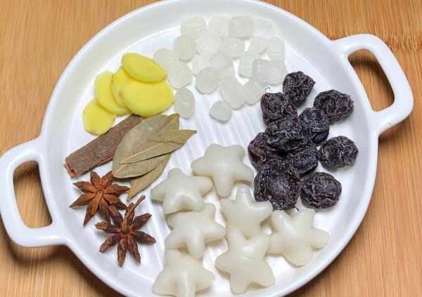 制作方法2、準備話梅、冰糖、薑片、八角、桂皮、香葉、年糕