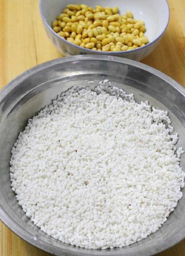 1、將大米和黃豆分別洗凈加水浸泡1晚