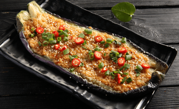 4. 蒜香茄子:把茄子切成片,用鹽醃制一段時間,然後用清水沖洗去掉鹽份,將茄子片烤至金黃色後放入碗中,倒入蒜泥香油即可。