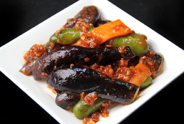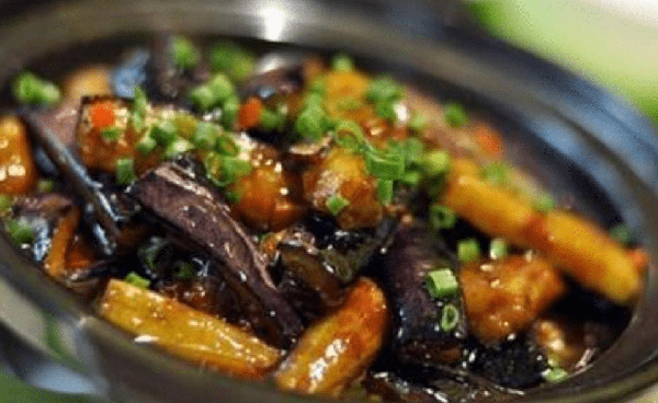 5. 麻婆茄子:將茄子切成小段,過油後和豆瓣醬、肉末、蒜末等調料一起炒制,最後加入豆腐乳、香菜等調料即可。