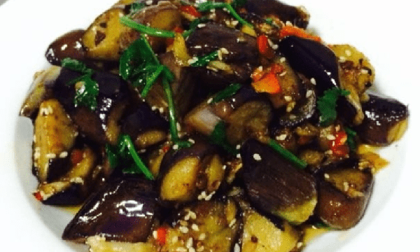 2. 酸辣茄子:將茄子切成細條狀,在鍋裡加入花椒爆香後用高溫油直接炸出金黃色,然後撈出放入碗中,加入醋、鹽、辣椒粉、味精、蔥薑等拌勻即可。