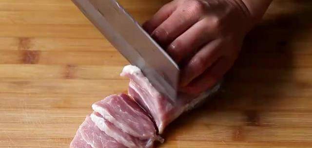 把一小片肉變成一大片肉,口感嫩滑,鮮香味美。先準備300克豬瘦肉,切成厚片,大概半厘米厚厚一點薄一點都沒有關系的,因為後面都會被打扁。案板上倒上玉米淀粉或者紅薯淀粉,把肉正反面裹上幹粉,然後用搟面杖敲打他,不用太用力防止把肉敲爛,這是一分鐘時的狀態。