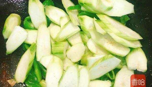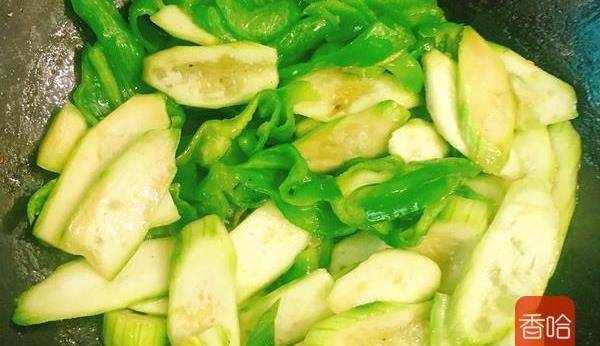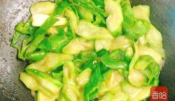 5.青椒變軟後倒入絲瓜片略炒。