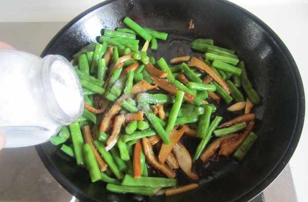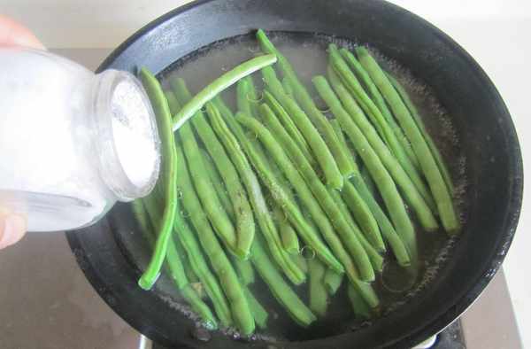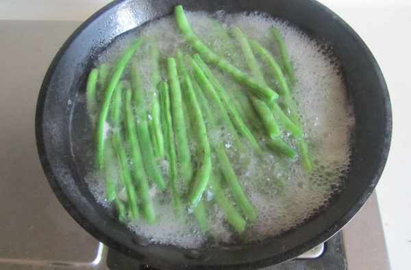 2.四季豆放入鍋中焯水,加入點鹽和油;