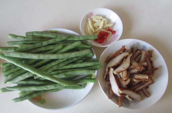 【四季豆炒牛肚絲】原料:鹵好的牛肚絲1小蝶四季豆1小把蒜3瓣紅椒2個醬油1勺油鹽適量制作:1.準備好原材料;