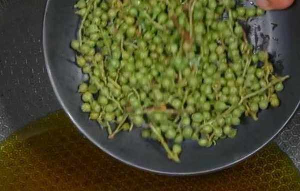鍋裡燒菜籽油,油熱倒入一把青花椒,青花椒可以去腥,增進食欲。