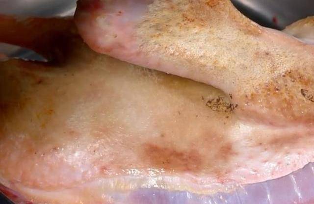 首先把菜市場買來的半隻土鴨子把它燒下皮,除去毛馨味,