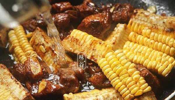 【材料】:玉米1根、豬肋排400克、料酒1勺、生抽1大勺、蠔油1大勺、鹽1小勺、冰糖適量、薑絲少許、