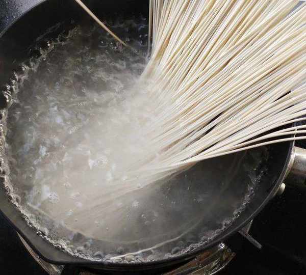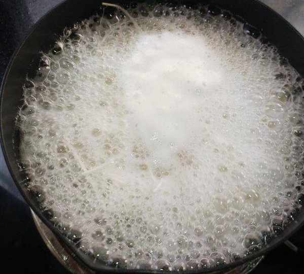 第3步、等水燒開,加入少量的冷水(加冷水的目的是為瞭讓面更快的煮熟)。