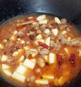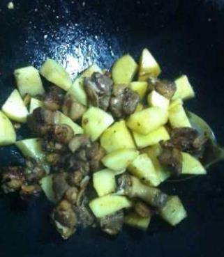 7,加入土豆,小火將土豆燜熟,之後加青紅椒,翻炒一下就可以出鍋瞭。
