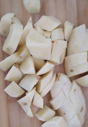 2,將土豆去皮洗凈切塊,為防止土豆變色,可以用清水浸泡。