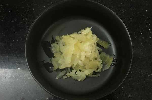 1、將咸菜提前泡水20分鐘,撈起瀝幹水。