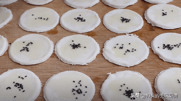5.在表面塗抹一層油,撒點黑芝麻,再用力按一下,讓它貼嚴實一點。