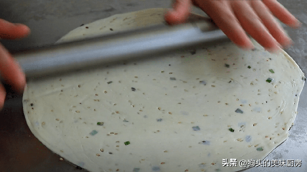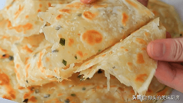 做手抓餅很簡單,主要材料就是面粉跟鹽、油。因為是自己吃的油量相對可以減少,油太少的話也不好吃,吃著發幹,也不會起酥。手抓餅的特點是表皮酥皮,裡面筋道柔軟,直接吃有淡淡的咸味。最熱門的口味是原味跟蔥香味的。蔥香味我更喜歡,蔥香濃鬱,很是誘人。它還有一個亮點就是裡面的層次很豐富。