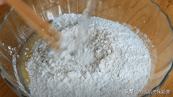 1.500克面粉放入盆中,加入5克鹽增加底味,調入椒鹽3克,玉米油15克,再用250毫升溫水和面。