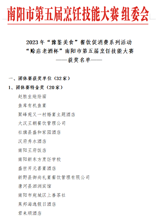 2023“豫鑒美食”南陽市第五屆烹飪技能大賽暨酒鄉小鎮首屆美食節頒獎典禮圓滿舉辦