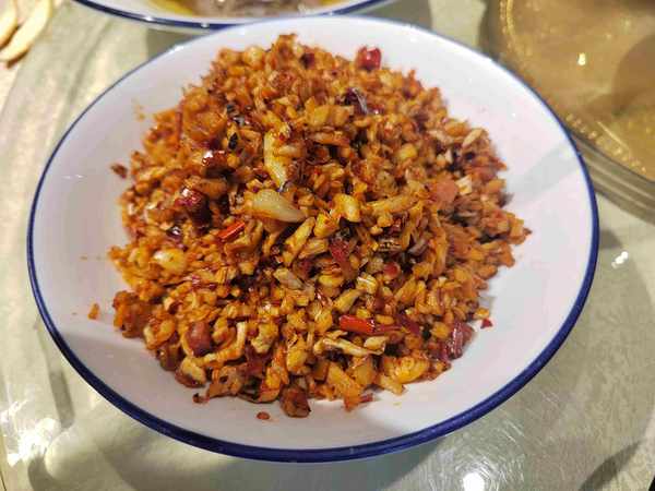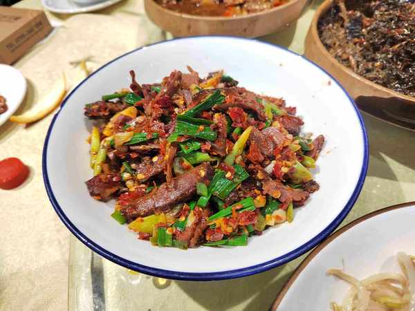臘牛肉是江西這邊的特色美食,既然來瞭江西,當然要品嘗一下。在茶水中涮瞭一遍的臘牛肉,吃起來很有嚼勁,有種吃牛肉幹的感覺,還是蠻香的。