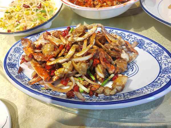螃蟹經過油炸後,吃起來酥脆鮮香,雖然傢裡不少辣椒,但是吃著並不辣,是小朋友的最愛。