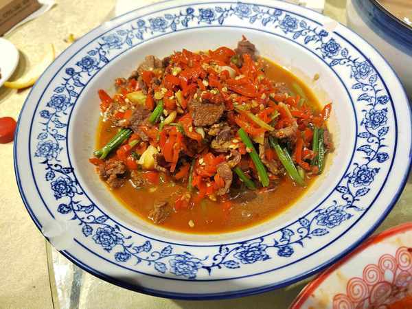 小陳平時很愛吃牛肉,但是看著全是辣椒的牛肉,還是不敢下筷子,但是坐在那裡不吃菜,也挺尷尬的,加上同桌的客人也比較熱情,一直招呼小陳吃菜。有瞭之前被辣到懷疑人生的經驗,小陳特意準備瞭一杯茶水,把牛肉放入茶水中涮一遍再吃,果然辣度降低瞭不少,不過味道也大打折扣瞭。