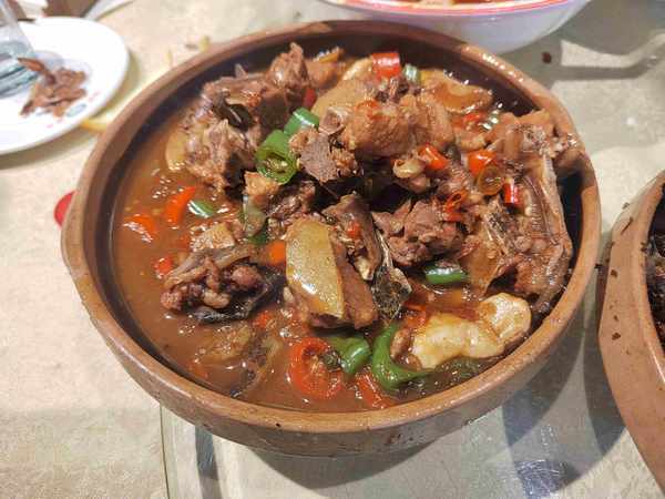 肉多刺少的多寶魚,用清蒸的做法,吃起來原汁原味,鮮美極瞭!但是同桌的本地人都不愛吃,很多人連筷子都沒伸,小陳說幸好有這道沒辣椒的多寶魚,可以慢慢品嘗,不然幹坐著等上菜,太尷尬瞭。