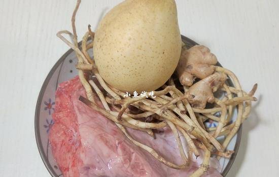 食材:魚腥草300克,豬肺350克,雪梨一個,生薑兩塊,米酒