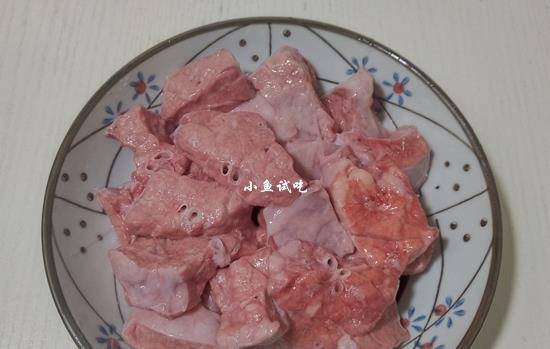 第一步:先把買回來的豬肺處理一下,多沖洗幾次,把豬肺表面臟的去除,再放入少許鹽抓一下再洗,然後切成片,這幾步要認真做,因為這樣能把豬肺中的腥氣去除大部分。