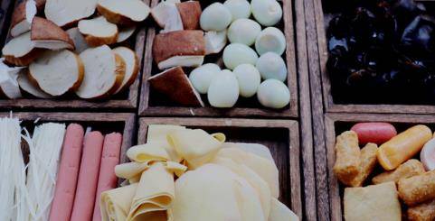 所需食材:鵪鶉蛋十個,雞胸肉500克,豆皮20克,豆卷40克,雞肝100克,火鍋小香腸25克,魚豆腐25克,土豆一個,香腸三根,金針菇適量,蔥適量,豆瓣醬適量,生薑兩塊,料酒適量,八角兩個,香葉四片,雞一隻。