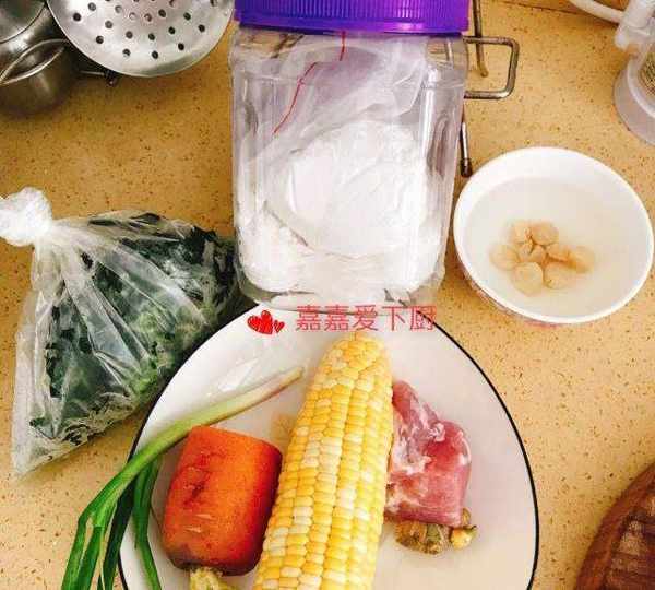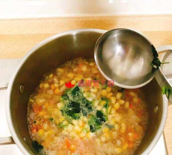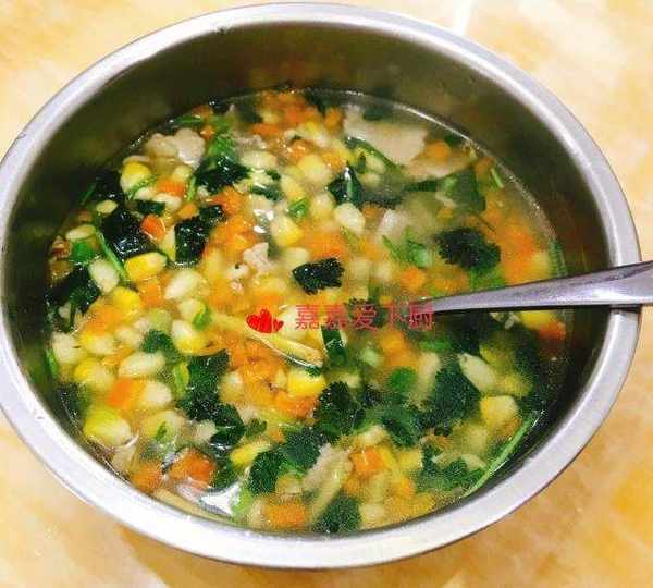 原料:玉米、胡蘿卜、豬肉、瑤柱、蔥花、薑絲、香菜、花生油、食鹽、雞粉、生粉、料酒、生抽。