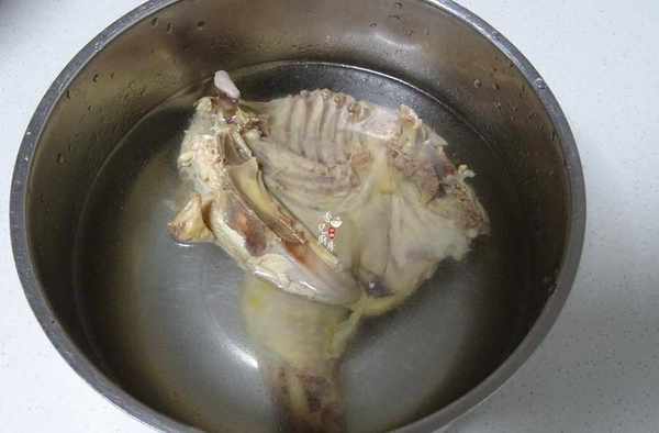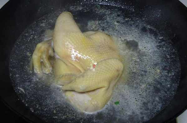 第二步;之後再把雞冷水下鍋,焯水後撈起立即用冷水沖冷控水。