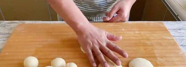 搓好之後下成均勻大小的12個面積,每個大概在36克左右,面劑放在掌心,給它團成小面球,這樣用來包先拿一個小面團放在掌心給它壓扁,然後捏成小渦管不需要去趕,因為咱這面非常的軟,捏好之後裝上堂下,然後給他收殼。