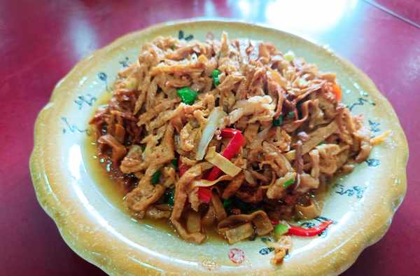 ②辣椒、白菜、豆腐皮、油豆腐都洗幹凈,切成絲備用。