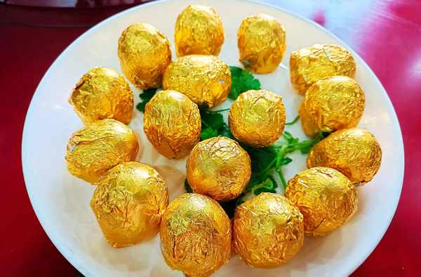 ③把糯米飯塞到鴨蛋中,再用錫紙包裹好。最後放入鍋中蒸20分鐘,燜3分鐘就可以食用。