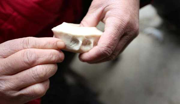 隨後我們用秸稈和棉花互相纏繞起來,做成面燈的燈芯,這樣燈芯就能立起來瞭。