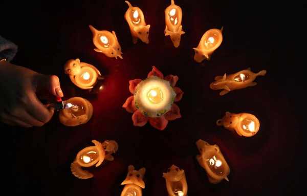 3、將面燈上鍋蒸熟,蒸熟之後要等到面燈完全晾涼。隨後我們在面燈裡面倒入少許的食用油,然後就可以將面燈點燃瞭。